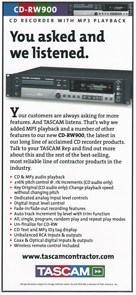 Half page vertical ad for TASCAM, Montebello CA.