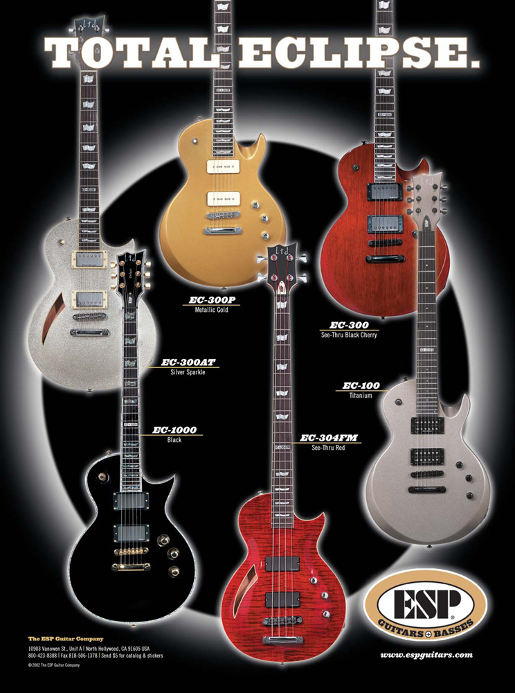Full page print ad for ESP Guitars, North Hollywood CA.